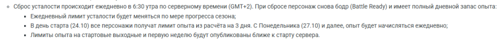 Вот стартует сервер через 2 дня, до какого лвл-а будет усталось на первые 3 дня, какая усталость будет в понедельник.