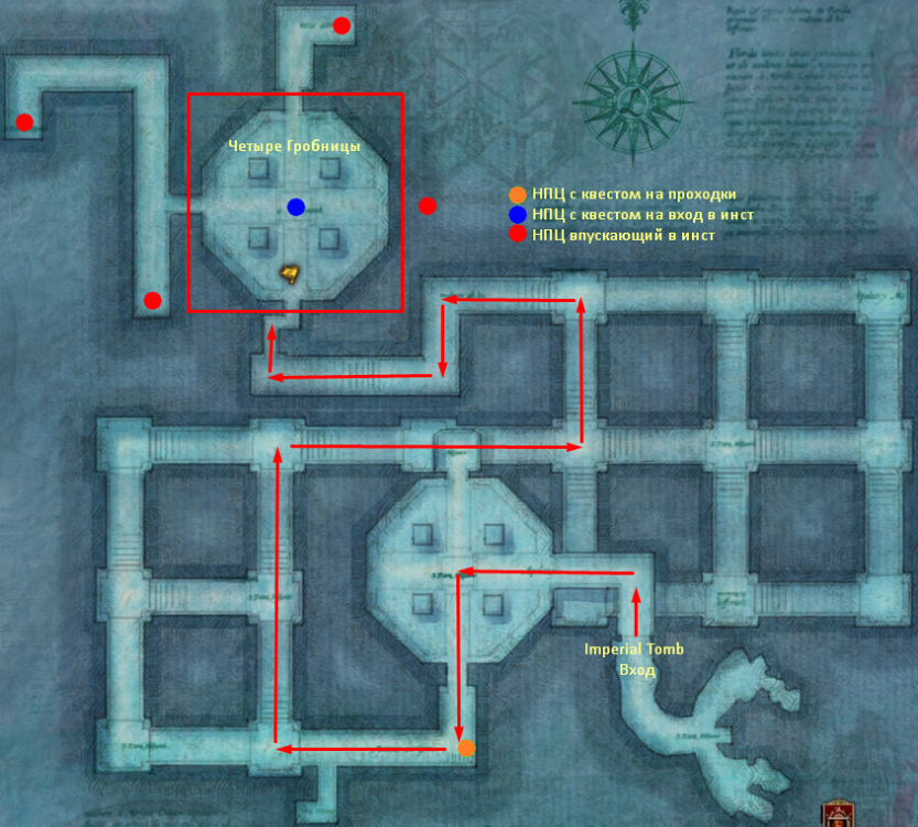 Карта Imperial Tomb с отметками важных НПЦ