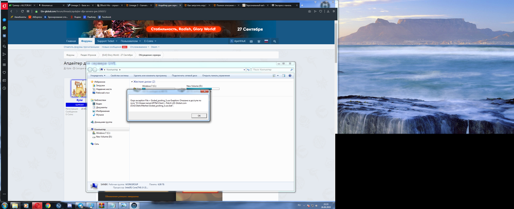Вчера была одна проблема... сегодня другая... но мне удалось зайти в игру...создать персонажа... выбрать сторону и при телепорте выдало ошибку...