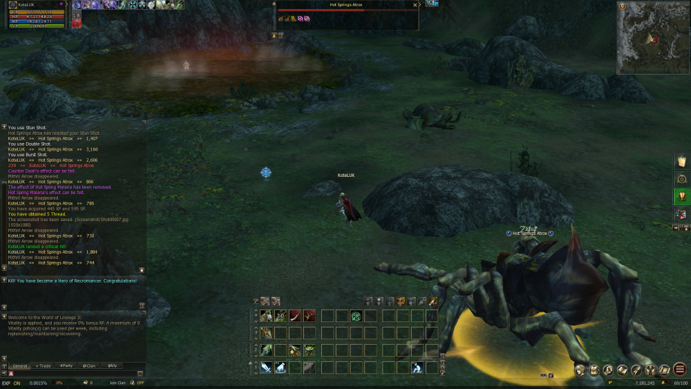 Доброго времени суток! Не оставляет мне покоя вопрос по урону лукарей на МВ - он объективно мал. Я прикладываю скрины с эквипом и баффом на двух персах - СР 72 и Дестр 72 лвлов - эквип топ А(МЖ сеты, шиид/ипос пушки +0). Бафф от менеджера+селфы, без ДС. Один и тот же моб в ХС - без каких либо резистов к луку или уменьшенного пдефа.