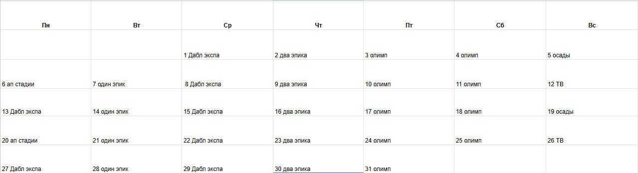 Конечно в идеале хотелось бы увидеть внутриигровой календарь событий. Где на каждый день расписано какое мероприятие проходит. И даже казалось бы в свободный день чтобы был ивент с х2 экспой или что еще.