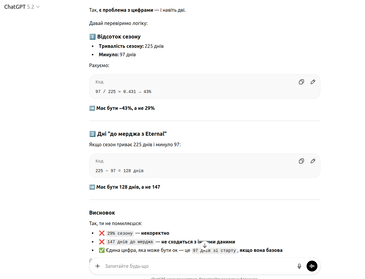 atoll13 211 Опубликовано: 29 января Рассказать Опубликовано: 29 января Хрен его знает кто делал промо лендинг к мержу, но у него явные проблемы с математикой Даже чат гпз говорит что что то не сходится ps. Хотел об етом в тг в коментах написать, но оказалось что я там забанен... "Администрация что происходит?77" Belarus SiDy 1 Цитата Ссылка на сообщение Поделиться на других сайтах More sharing options...
